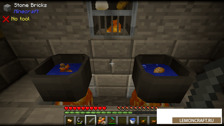Теперь работать с водой станет намного проще и интереснее. Мод Aqua Munda добавляет в игру специальные устройства, которые упрощают добычу воды, ее очистку и передвижения до места назначения. Так же в игре появятся разделочная доска и котел, с помощью которых можно приготовить пищу.